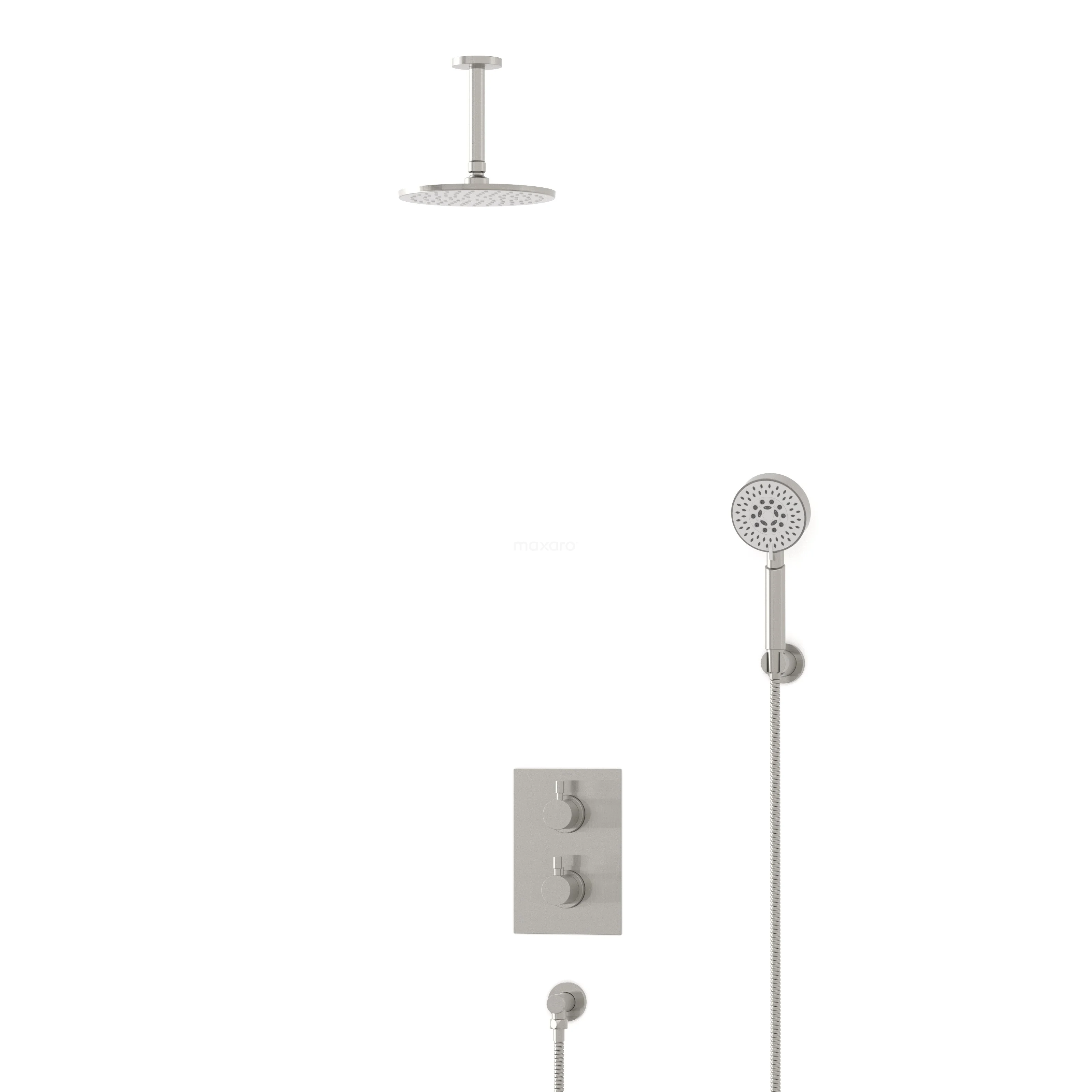 Dieses schöne Unterputz-Regenbrause-Set der Serie Radius besteht aus Thermostatarmatur, Regenbrause, Deckenarm, Handbrause, Handbrausehalter und Brauseschlauch. Damit haben Sie sofort alles, was Sie für die Vervollständigung Ihrer Dusche brauchen. Außerdem verfügt das Duschset über Easy-Clean. Damit können Sie die Strahlöffnungen der Hand- und Regendusche leicht reinigen.