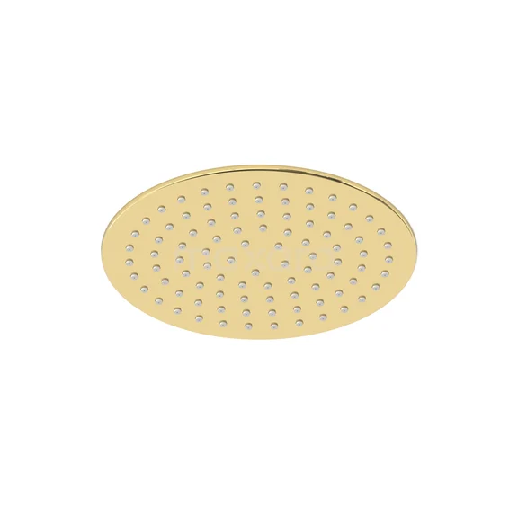 Der Regenduschekopf hat eine extra glatte Oberfläche, da er mehrfach manuell und maschinell poliert wird. Nach dem Polieren wird der Duschkopf vernickelt und verchromt, wodurch die Beschichtung besonders stark ist. Anschließend wird die Regendusche gebürstet und erhält durch die Anwendung von PVD eine glänzende hellgoldene Farbe. Dank des hohen Verarbeitungsniveaus hat der Duschkopf eine luxuriöse Ausstrahlung.