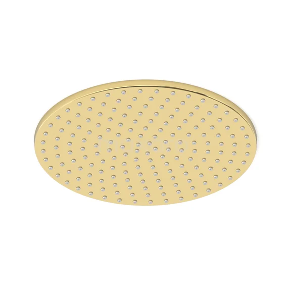 Der Regenduschekopf hat eine extra glatte Oberfläche, da er mehrfach manuell und maschinell poliert wurde. Nach dem Polieren wird der Duschekopf vernickelt und verchromt, wodurch die Beschichtung besonders stark ist. Anschließend wird die Regendusche gebürstet und erhält durch die Anwendung von PVD eine glänzende hellgoldene Farbe. Dank des hohen Qualitätsniveaus hat der Duschekopf eine luxuriöse Ausstrahlung.