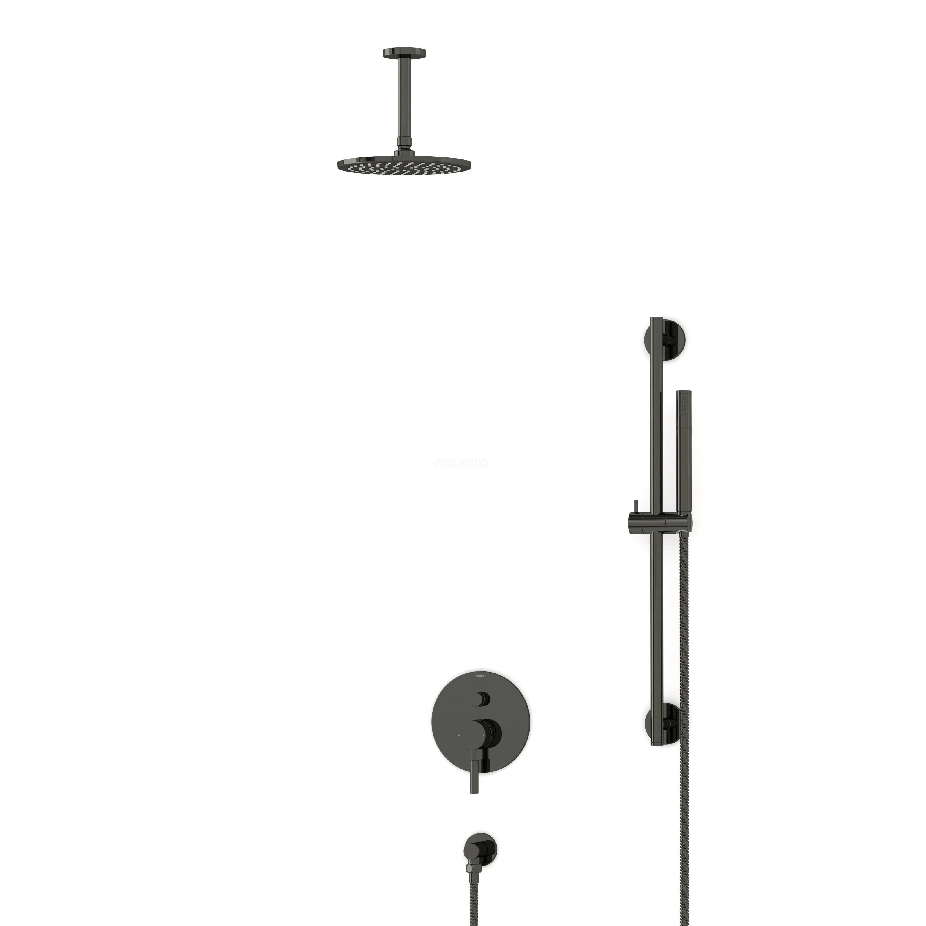 Radius Schwarzchrom Unterputz-Regenbrausegarnitur, Mischbatterie, 20cm Kopfbrause, Schwarzchrom