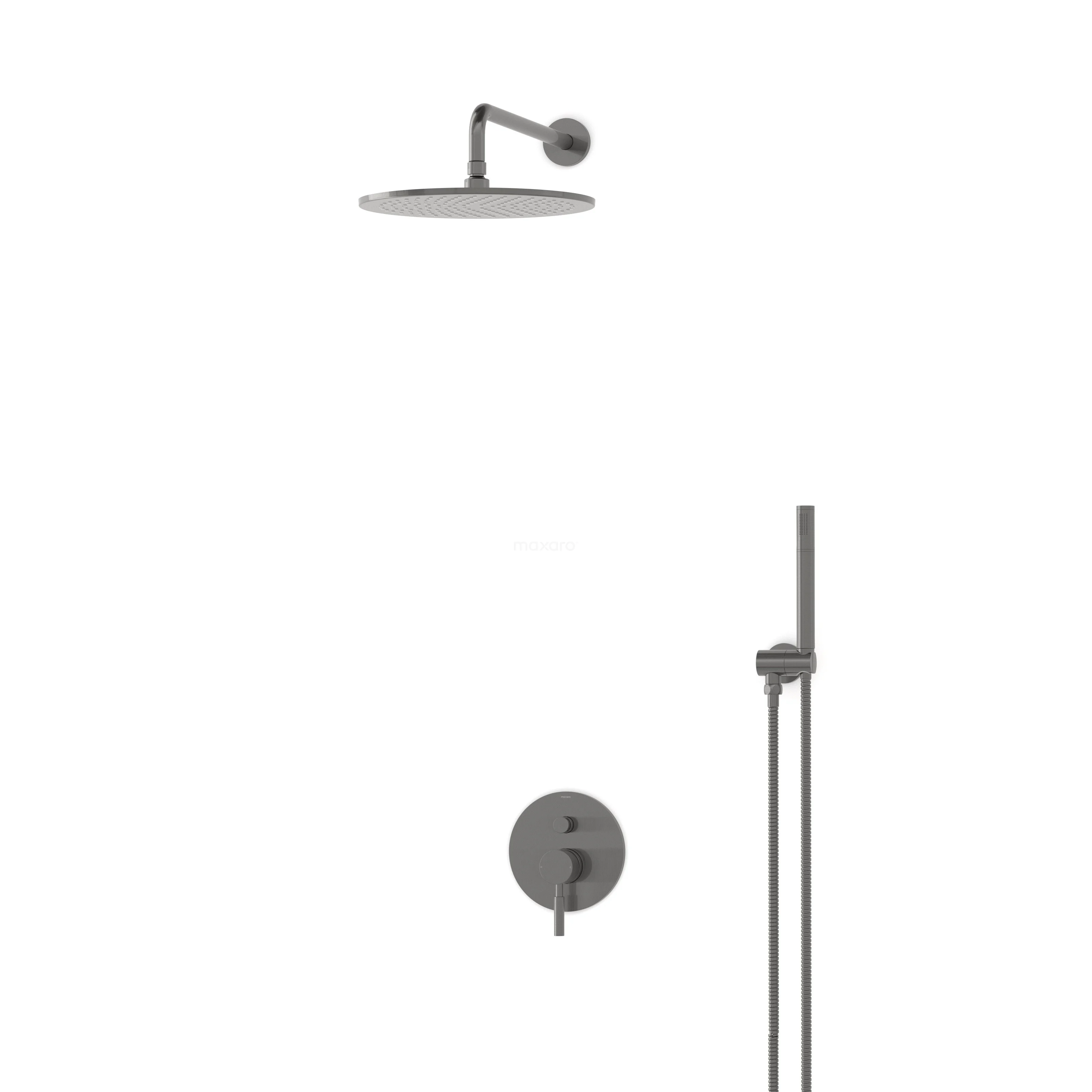 Regenbrausegarnitur Radius Schwarz Stahl, Einhebelmischbatterie, 30cm Kopfbrause, Schwarzes Metall