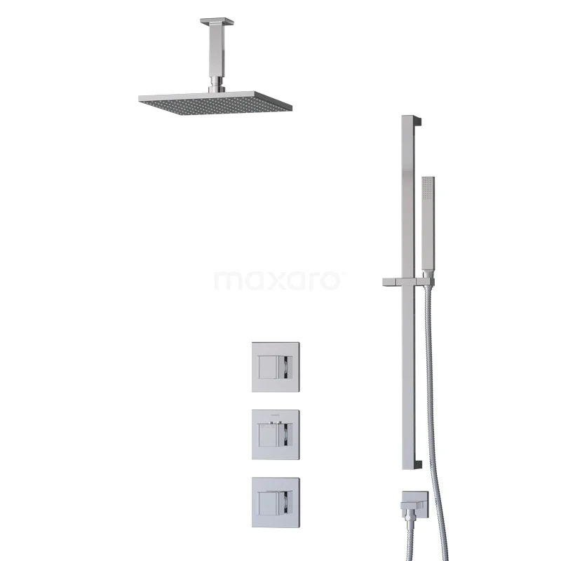 Das Cubic Regenbrauseset hat ein quadratisches Design mit Chrom-Finish und sieht in einem modernen Badezimmer großartig aus. Dieses Unterputz-Set enthält eine Thermostatarmatur, eine 25 cm Regendusche, einen Deckenarm, eine Handbrause, einen Handbrausehalter und einen Brauseschlauch. Damit haben Sie alles, was Sie für Ihre Dusche brauchen. Außerdem sind Regen- und Handbrause mit Easy-Clean ausgestattet, wodurch sich der Strahlregler leicht von Kalkablagerungen reinigen lässt. So erleben Sie ein Optimum an Pflegeleichtigkeit und Reinigung.