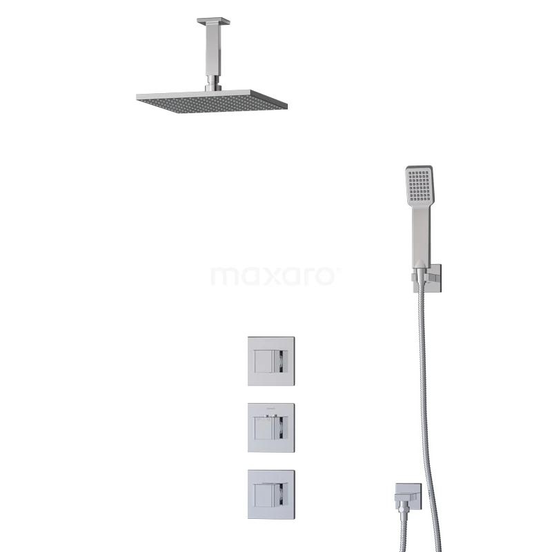 Das Cubic Regenbrauseset hat ein quadratisches Design mit Chrom-Finish und sieht in einem modernen Badezimmer großartig aus. Dieses Unterputz-Set enthält eine Thermostatarmatur, eine 25 cm Regendusche, einen Deckenarm, eine Handbrause, einen Handbrausehalter und einen Brauseschlauch. Damit haben Sie alles, was Sie für Ihre Dusche brauchen. Außerdem sind Regen- und Handbrause mit Easy-Clean ausgestattet, wodurch sich der Strahlregler leicht von Kalkablagerungen reinigen lässt. So erleben Sie ein Optimum an Pflegeleichtigkeit und Reinigung.