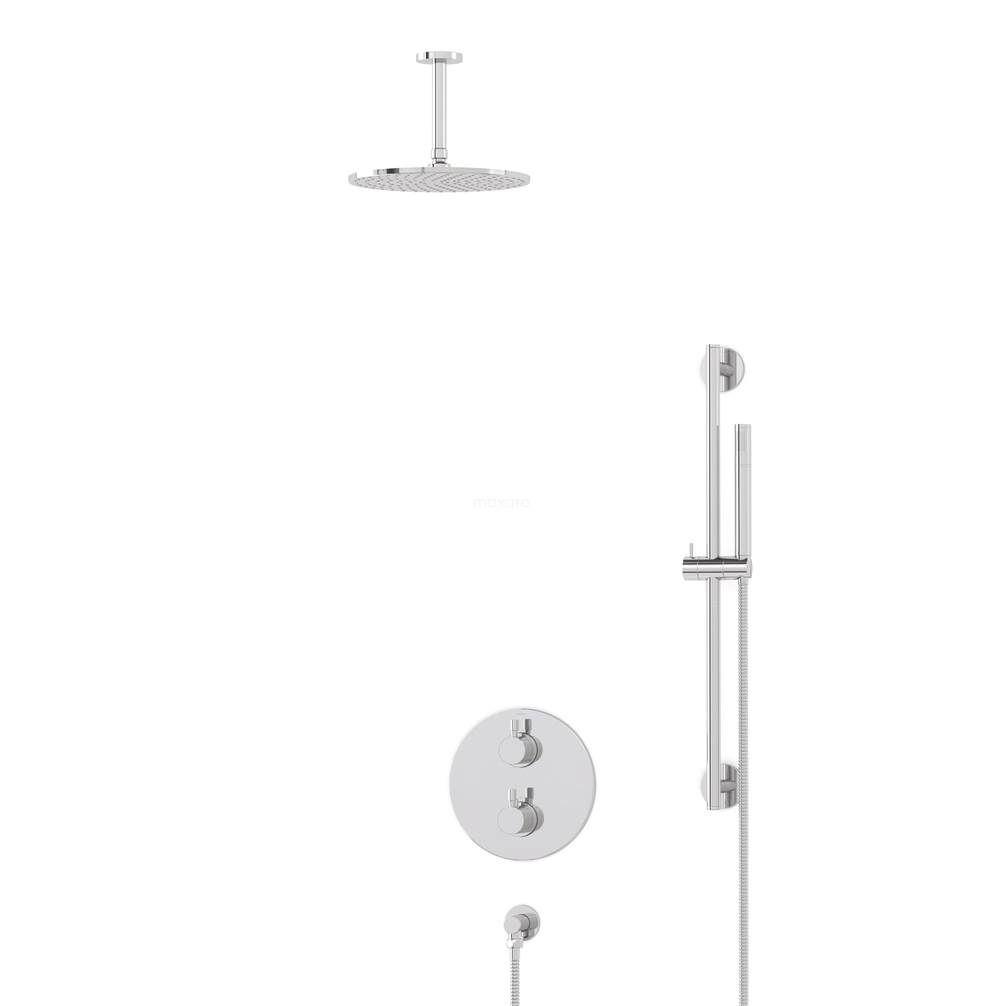 Dieses schöne Unterputz-Regenbrause-Set der Serie Radius besteht aus Thermostatarmatur, Regenbrause, Deckenarm, Handbrause, Handbrausehalter und Brauseschlauch. Damit haben Sie sofort alles, was Sie für die Vervollständigung Ihrer Dusche brauchen. Außerdem verfügt das Duschset über Easy-Clean. Damit können Sie die Strahlöffnungen der Hand- und Regendusche leicht reinigen.