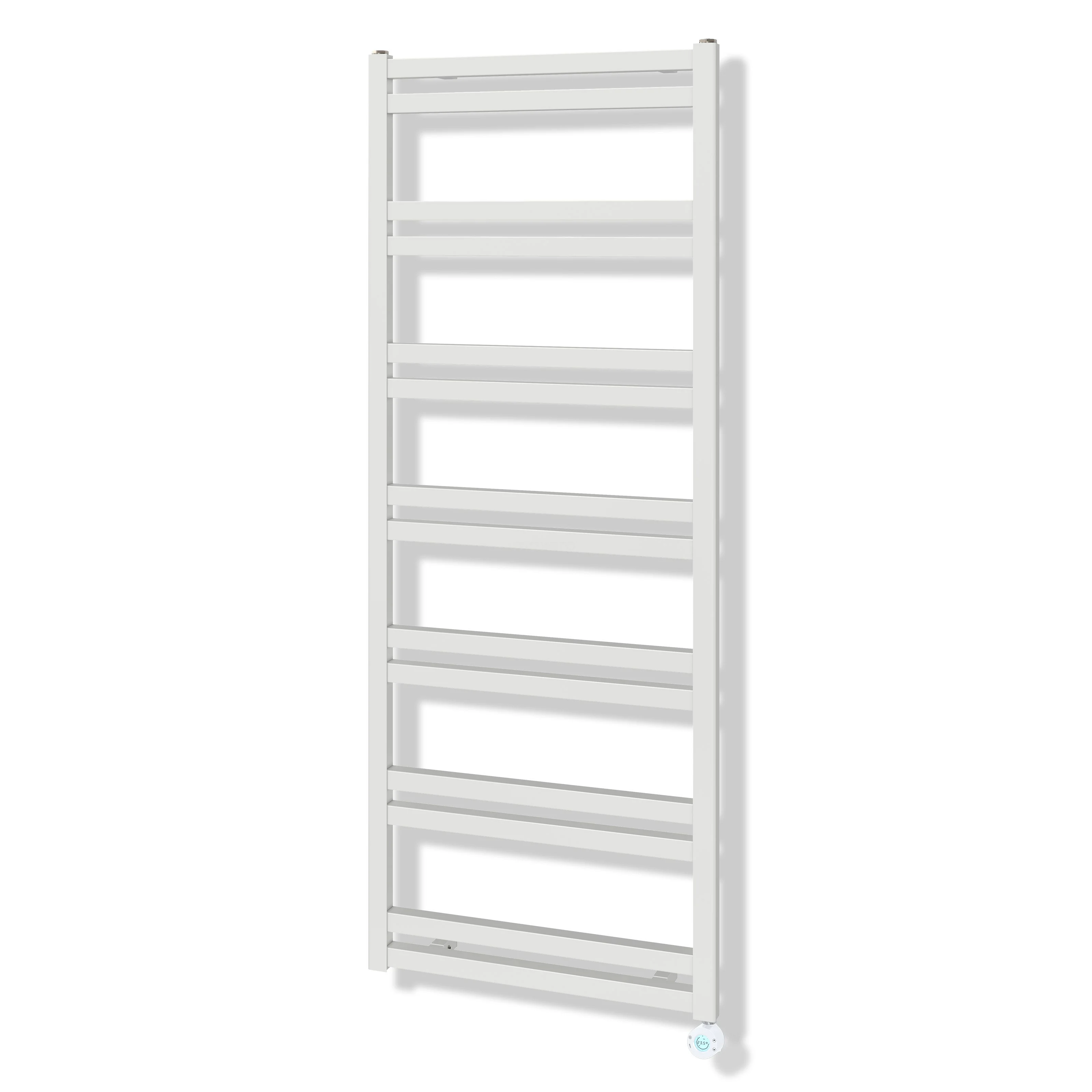 Elektrischer Handtuchheizkörper Ausgestattet mit einem elektrischen Heizelement, ist dieser Heizkörper ideal für Räume ohne Zentralheizungsanschluss. Das Element lässt sich einfach in den Vorlauf oder Rücklauf einbauen. Vor der Installation füllen Sie den Heizkörper zunächst mit 80% Wasser und 10% Maxaro Heizkörperfüllung.