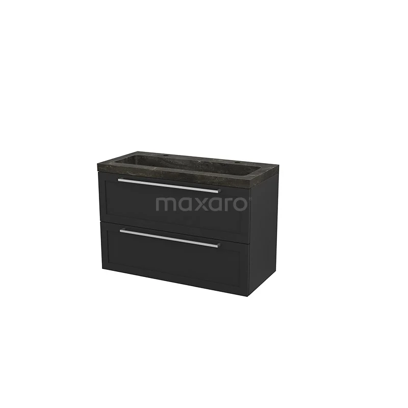 Badmöbel 100cm Modulo+ Carbon 2 Schubladen Rahmen Waschbecken Naturstein Blau
