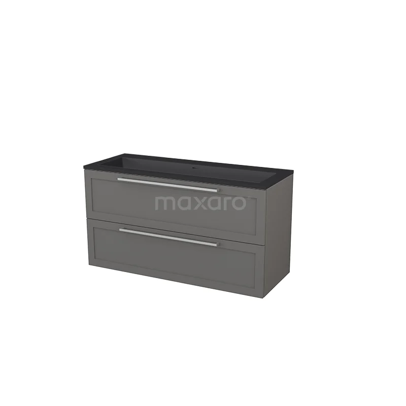 Badmöbel 120 cm Modulo+ Grau 2 Schubladen Rahmen Waschbecken Quarz