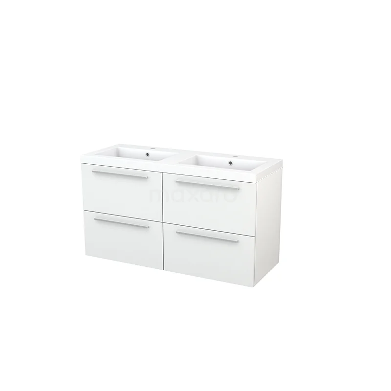 Badmöbel 120cm Modulo+ Hochglanz Weiß 4 Schubladen Flaches Waschbecken Mineralguss