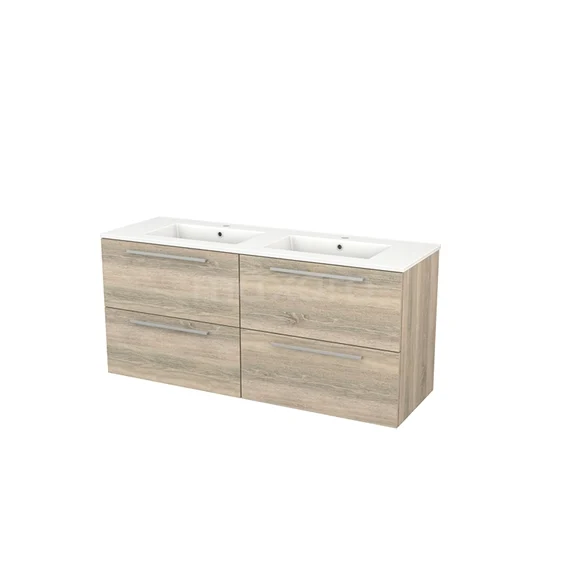 Badmöbel 140cm Modulo+ Eiche 4 Schubladen Flaches Waschbecken Keramik