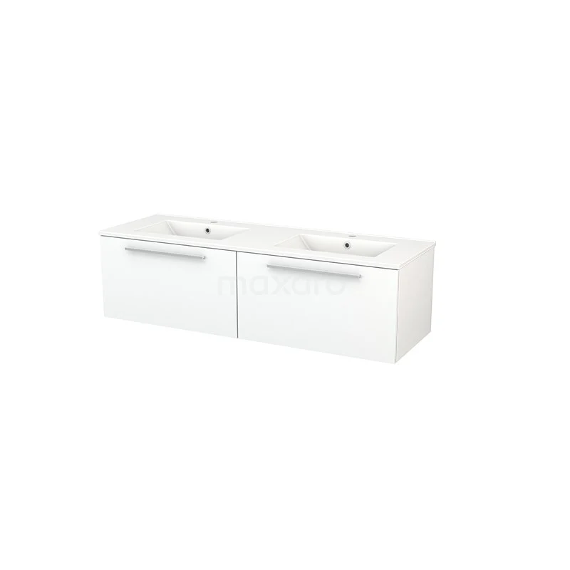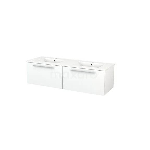 Badmöbel 140cm Modulo+ Matt Weiß 2 Schubladen Flaches Waschbecken aus Keramik