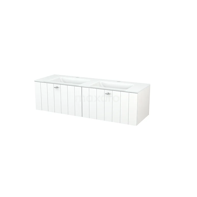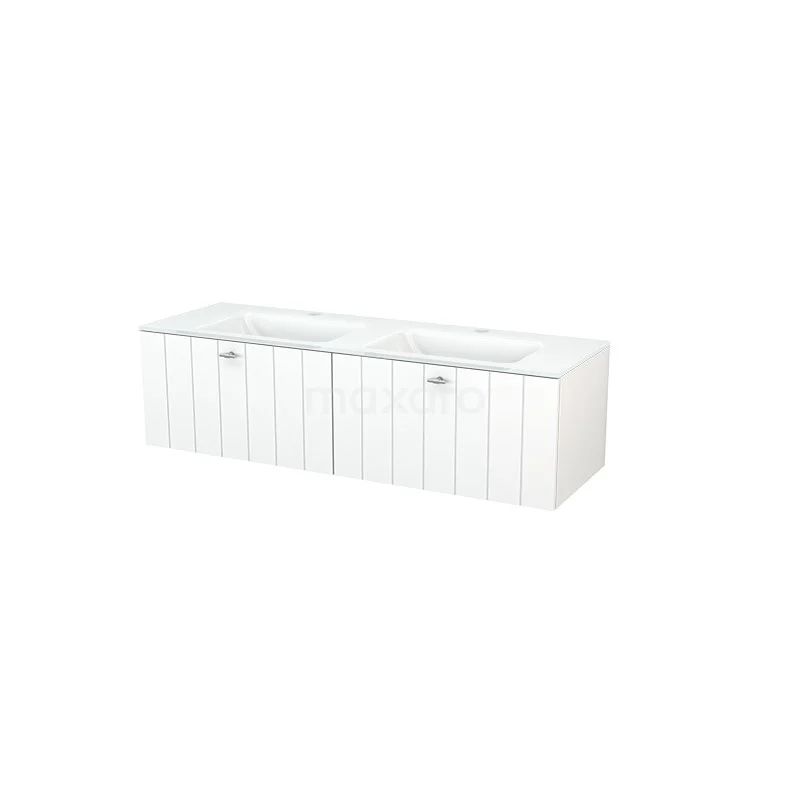 Badmöbel 140cm Modulo+ Matt Weiß 2 Schubladen Lamellenwaschbecken Glas