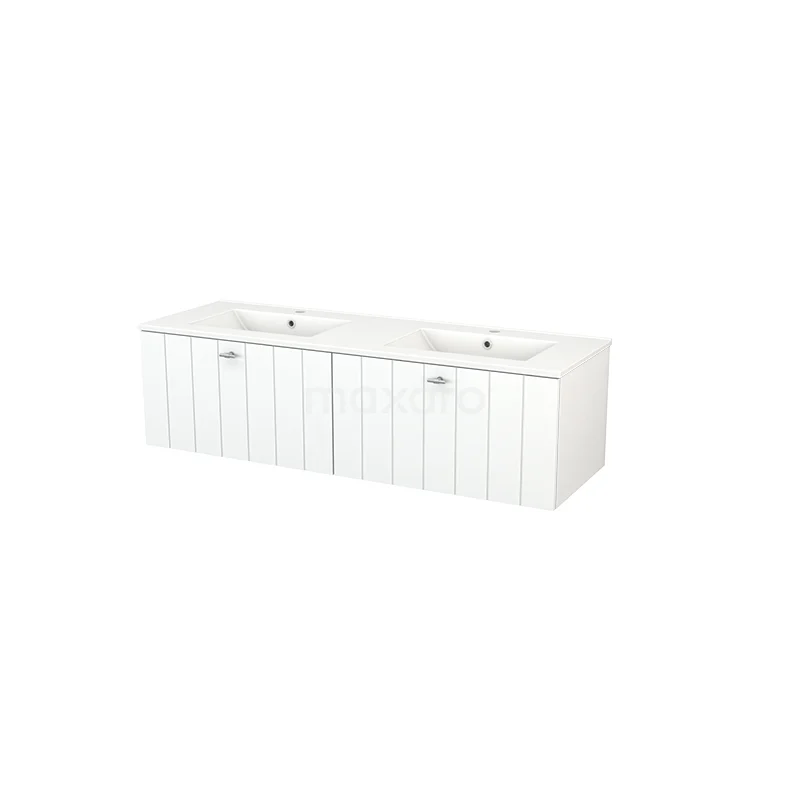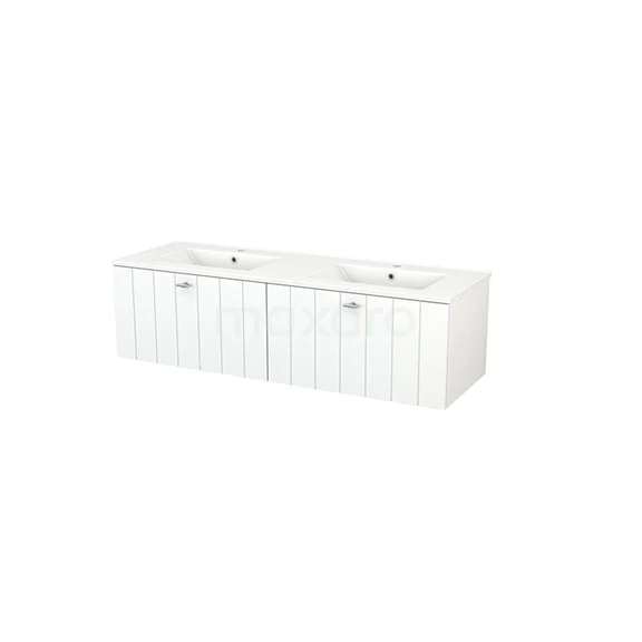 Badmöbel 140cm Modulo+ Matt Weiß 2 Schubladen Lattenrost Waschbecken Keramik