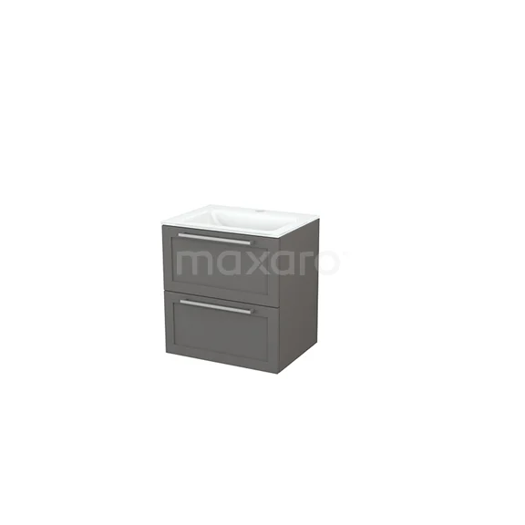 Badmöbel 60cm Modulo+ Basalt 2 Schubladen Rahmen Waschbecken Glas