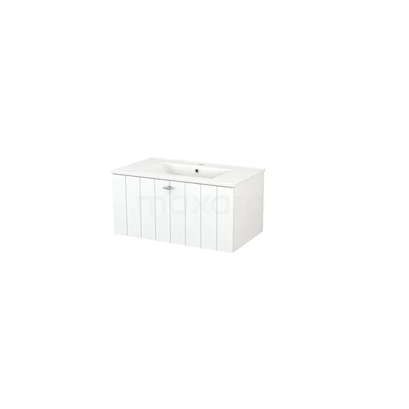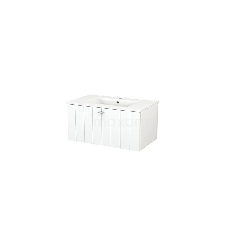Badmöbel 80cm Modulo+ Matt Weiß 1 Schubladen-Lamellen-Waschbecken Keramik