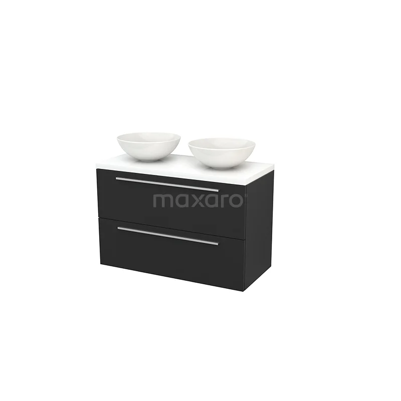 Modulo+ Plato Badmöbel mit Aufsatzwaschbecken | 100 cm Hochglanz Weiß front Hochglanz Weiß blatt 2 übereinanderliegende Schubladen