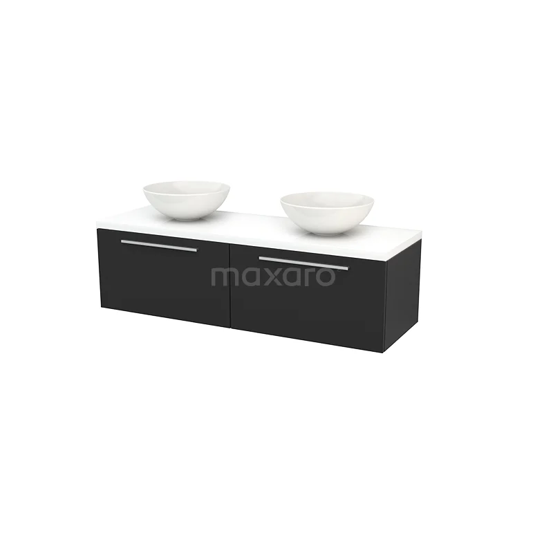 Modulo+ Plato Badmöbel mit Aufsatzwaschbecken | 140 cm Hochglanz Weiß front Hochglanz Weiß blatt 2 nebeneinanderliegende Schubladen