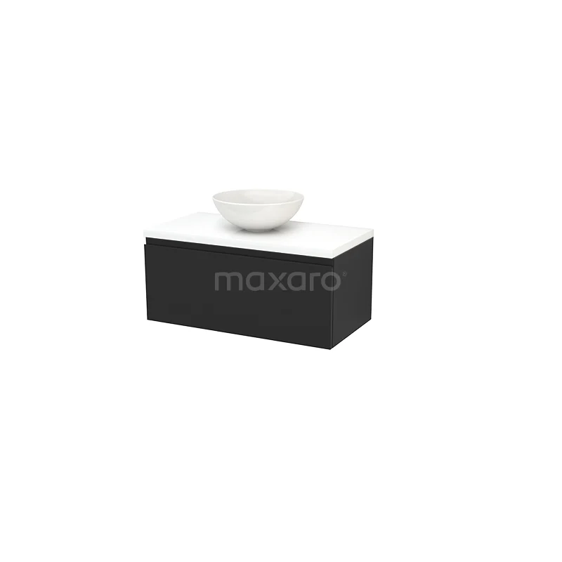 Modulo+ Plato Badmöbel mit Aufsatzwaschbecken | 90 cm Hochglanz Weiß front Hochglanz Weiß blatt 1 Schublade
