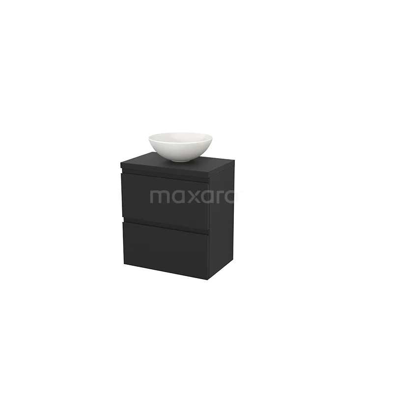 Modulo+ Plato Slim Badmöbel mit Aufsatzwaschbecken | 60 cm Kohlenstoff front Kohlenstoff blatt 2 übereinanderliegende Schubladen