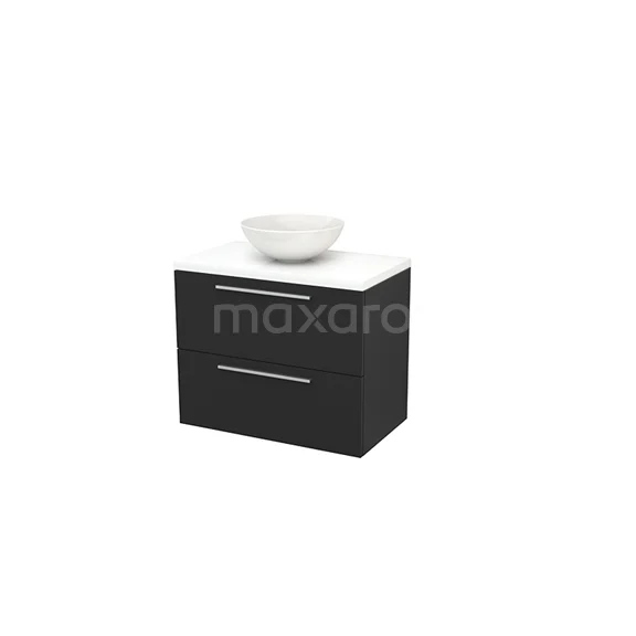 Waschtischunterschrank mit Konsole 80cm Carbon Flat Modulo+ Plato Hochglanz Weiß Platte