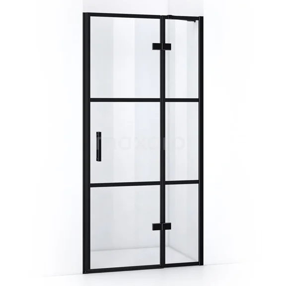 Pearl Duschtür | 100 cm Matt Schwarz Klar mit 4 schwarzen Streifen Drehtür