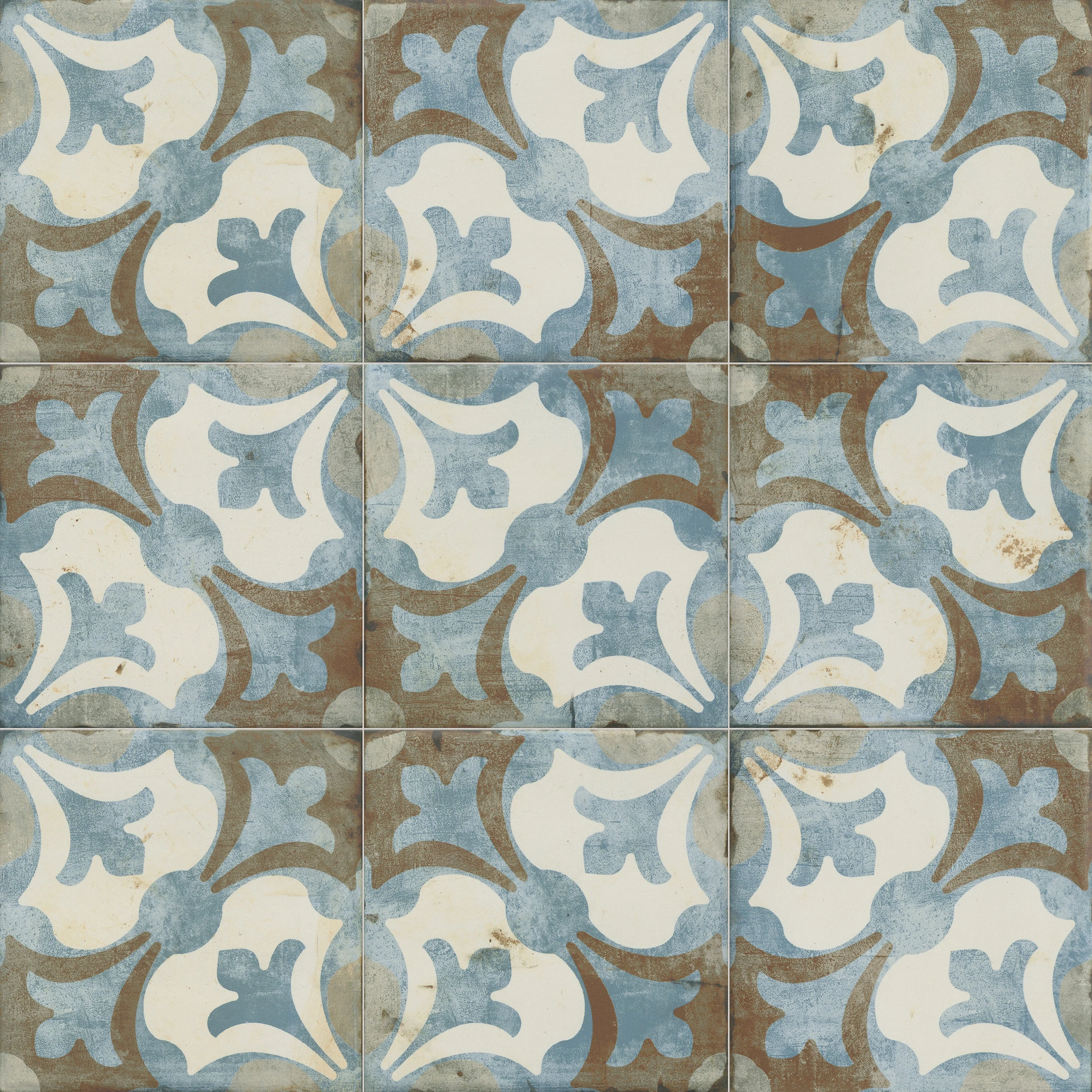 Bodenfliese/Wandfliese Vintage Klassisch Blau 20x20cm Dekor Mehrfarbig Nicht Rektifiziert