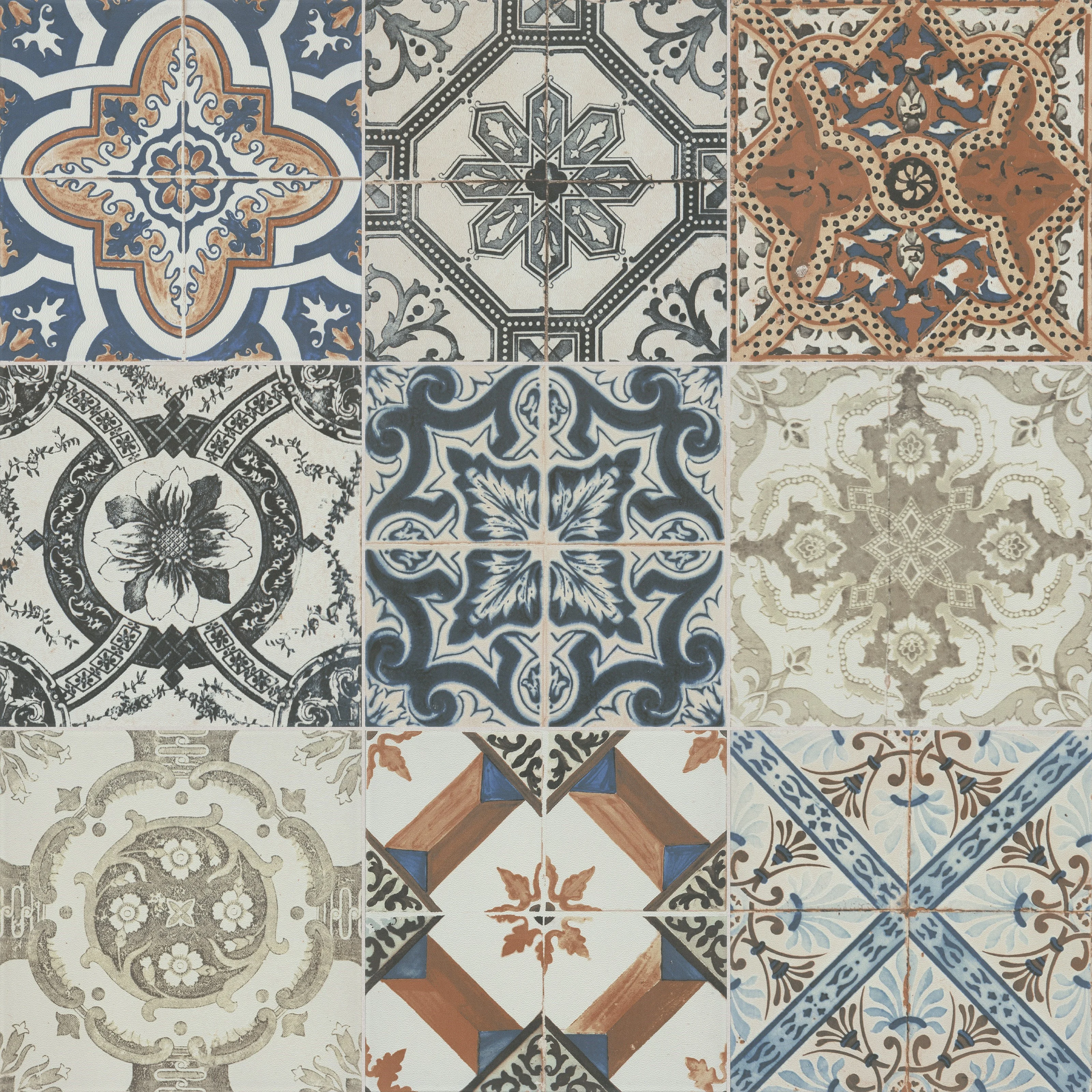 Dekorfliese Deco Vintage 20x20cm Portugiesisch Mehrfarbig