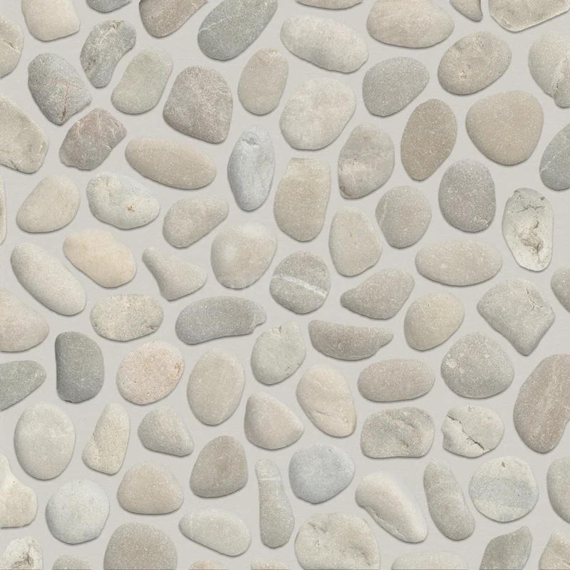 Die matt-weiße Mosaikfliese aus der Serie Pebble besteht aus Kieselsteinen, die direkt aus der Natur stammen. Die runde, abgenutzte Form ist durch den Fluss des Wassers entstanden. Das macht jeden Stein zu einem Unikat. Darüber hinaus hat jeder Kieselstein schöne Farbnuancen, die dem Mosaik zusätzliche Tiefe verleihen. Mit diesem Kieselsteinmosaik holen Sie sich buchstäblich ein Stück Natur in Ihr Zuhause und sorgen für eine stimmungsvolle Ergänzung.