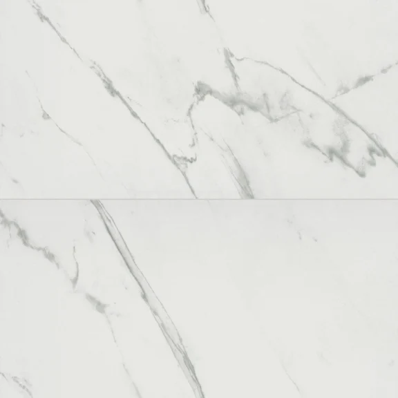 Abschluss Die Fliese wird rektifiziert. Das bedeutet, dass die Kanten nach dem Brennvorgang rechtwinklig geschliffen werden, was ein glattes Ergebnis ergibt. Die Fliese kann sogar mit einer Fuge von nur 2 mm verlegt werden. Die beste Wirkung erzielen Sie, wenn Sie die Fliese in Marmoroptik mit einer silbergrauen Fuge kombinieren. Wählen Sie außerdem das richtige Zubehör wie Fliesenkleber und Dichtungsmasse, um ein optimales Endergebnis zu erzielen.