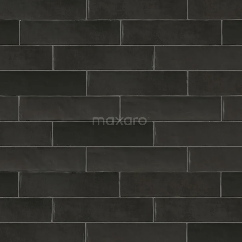 Colora Wandfliese | 6,2x25 cm Uni Schwarz Glänzend