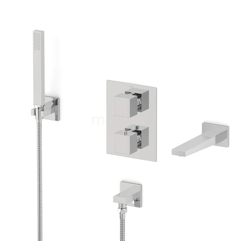 Cubic Wanneneinbau-Mischbatterie-Set | Chrom Thermostatarmatur mit Handbrause 1 Position