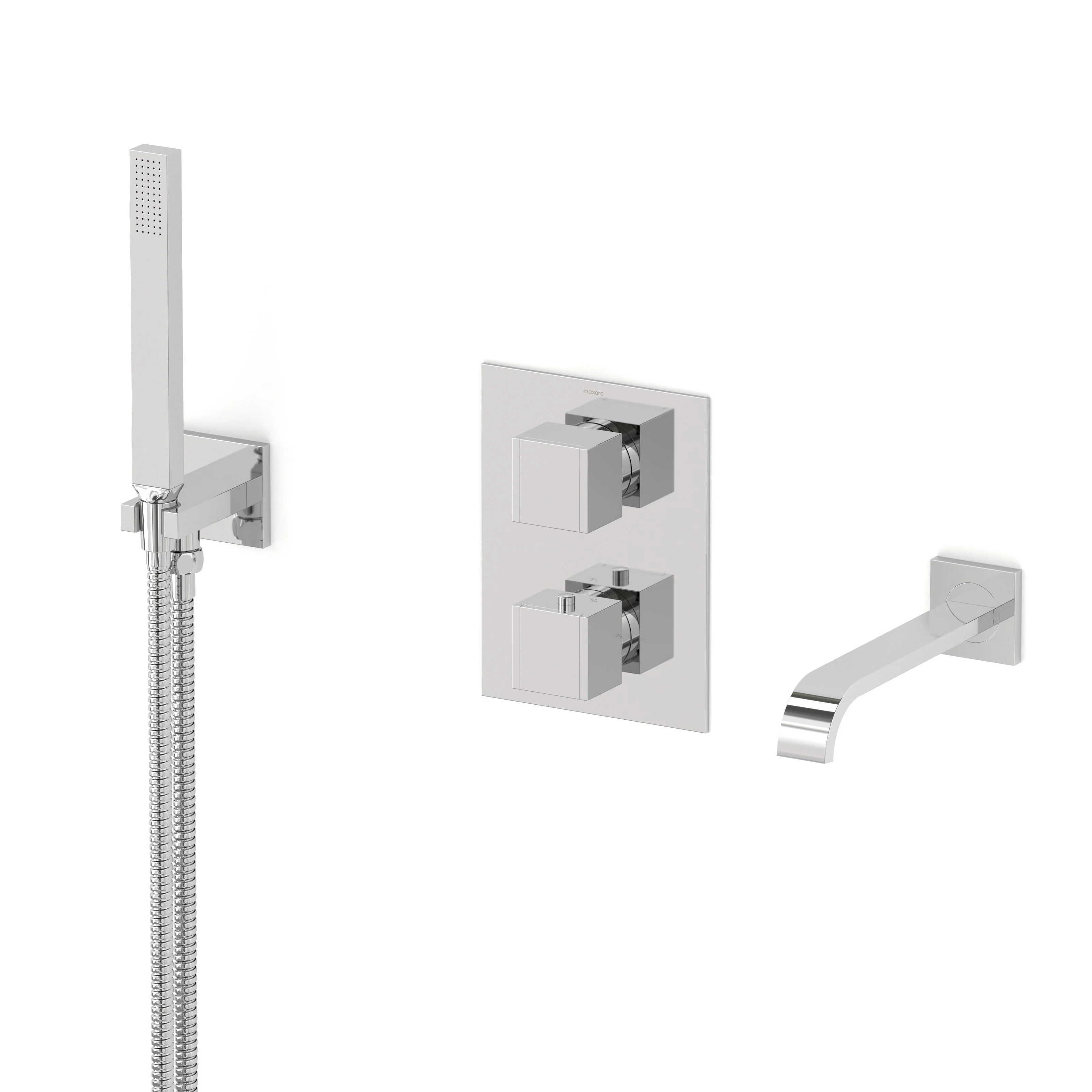Cubic Wanneneinbau-Mischbatterie-Set | Chrom Thermostatarmatur mit Handbrause 1 Position
