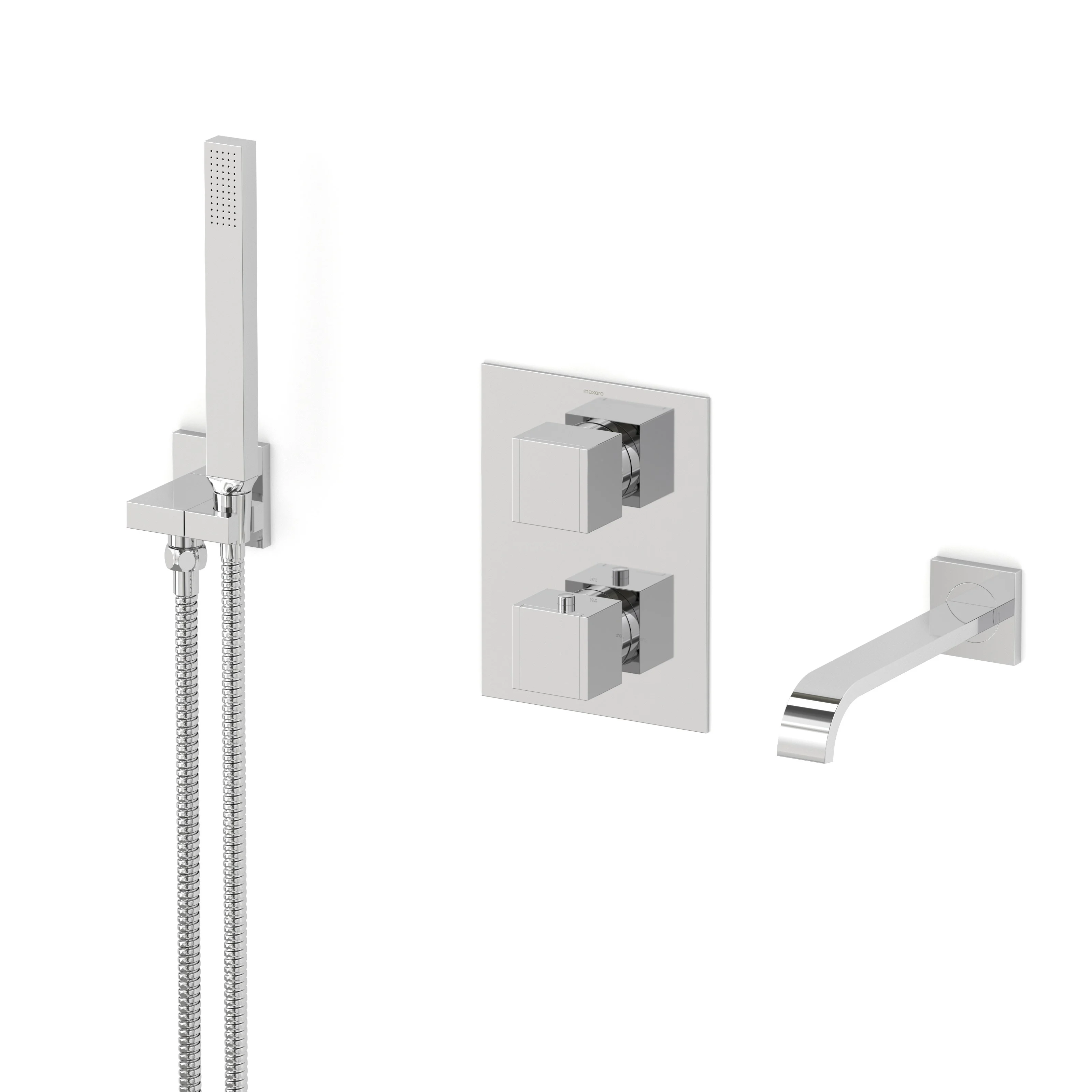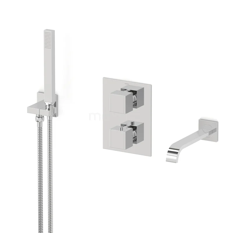 Cubic Wanneneinbau-Mischbatterie-Set | Chrom Thermostatarmatur mit Handbrause 1 Position