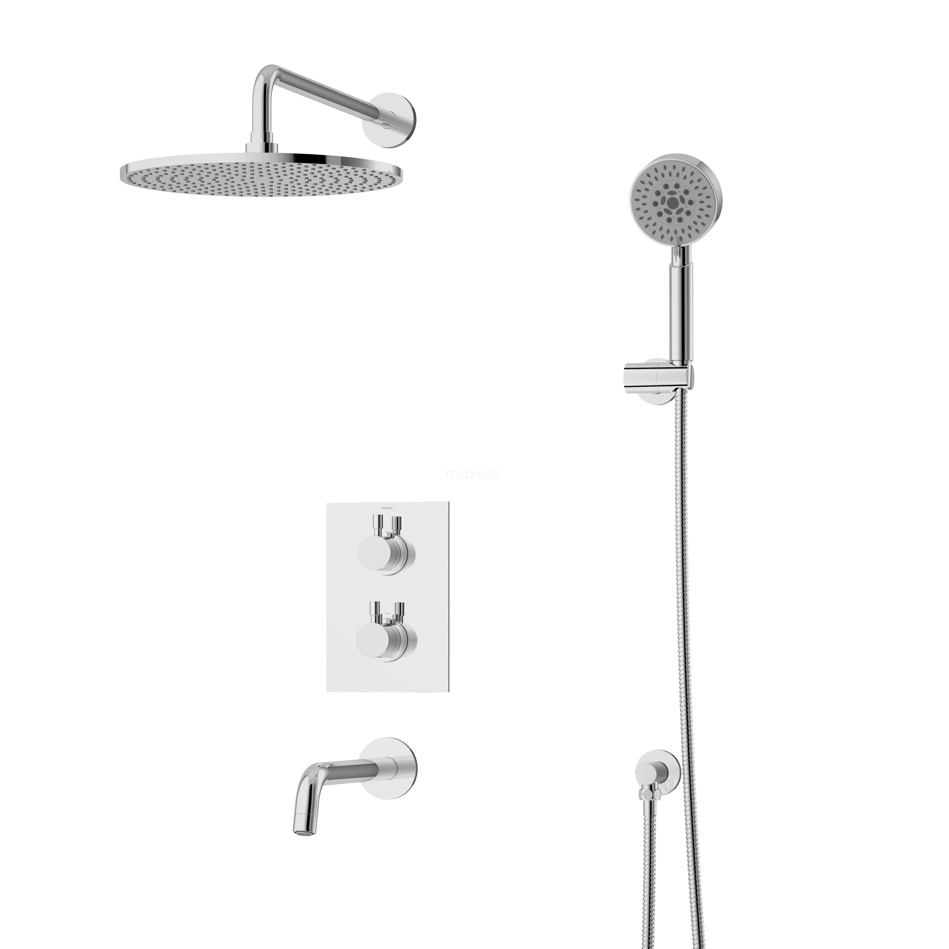 Einbau Badewannenarmatur mit Regendusche Radius Chrom, Thermostatisch, Chrom