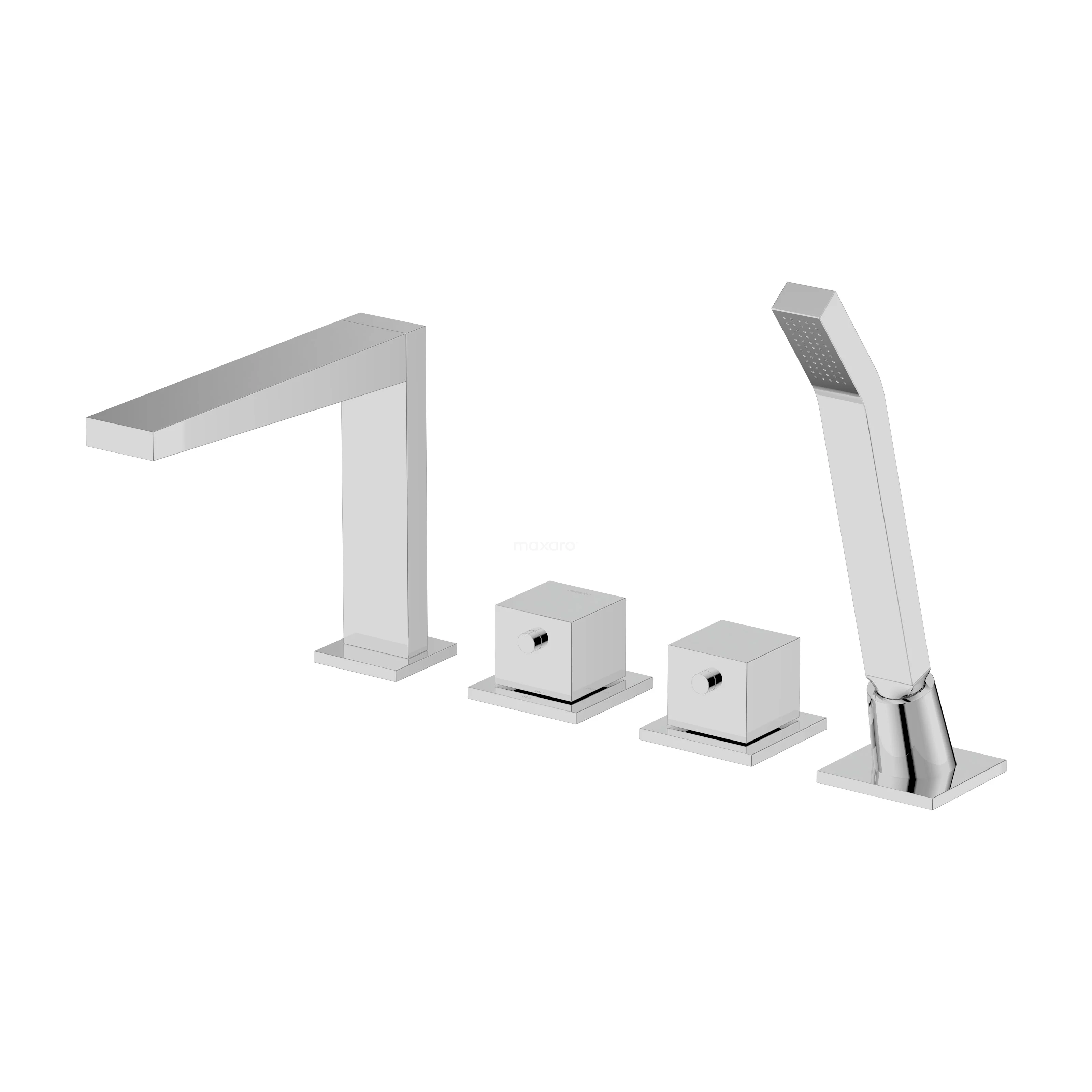 Kubische Badewannenarmatur | Chrom Thermostatisch mit Handbrause | Wannenrandmontage