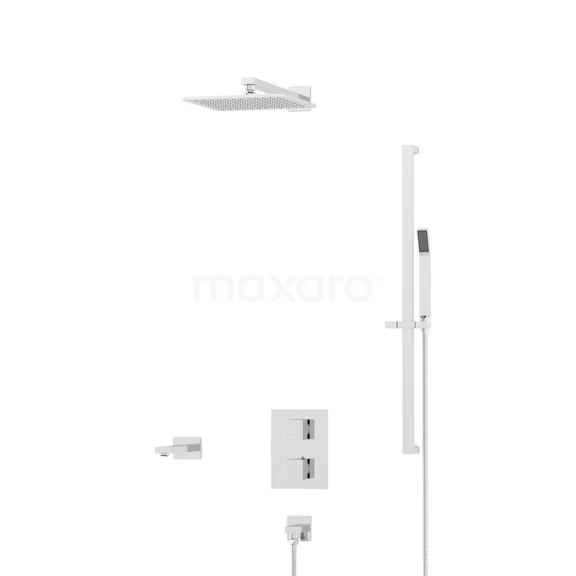 Kubische Einbau Badewannenarmatur mit Regendusche | Chrom Thermostatisch