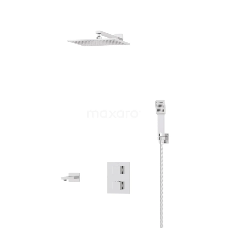 Kubische Einbau Badewannenarmatur mit Regendusche | Chrom Thermostatisch