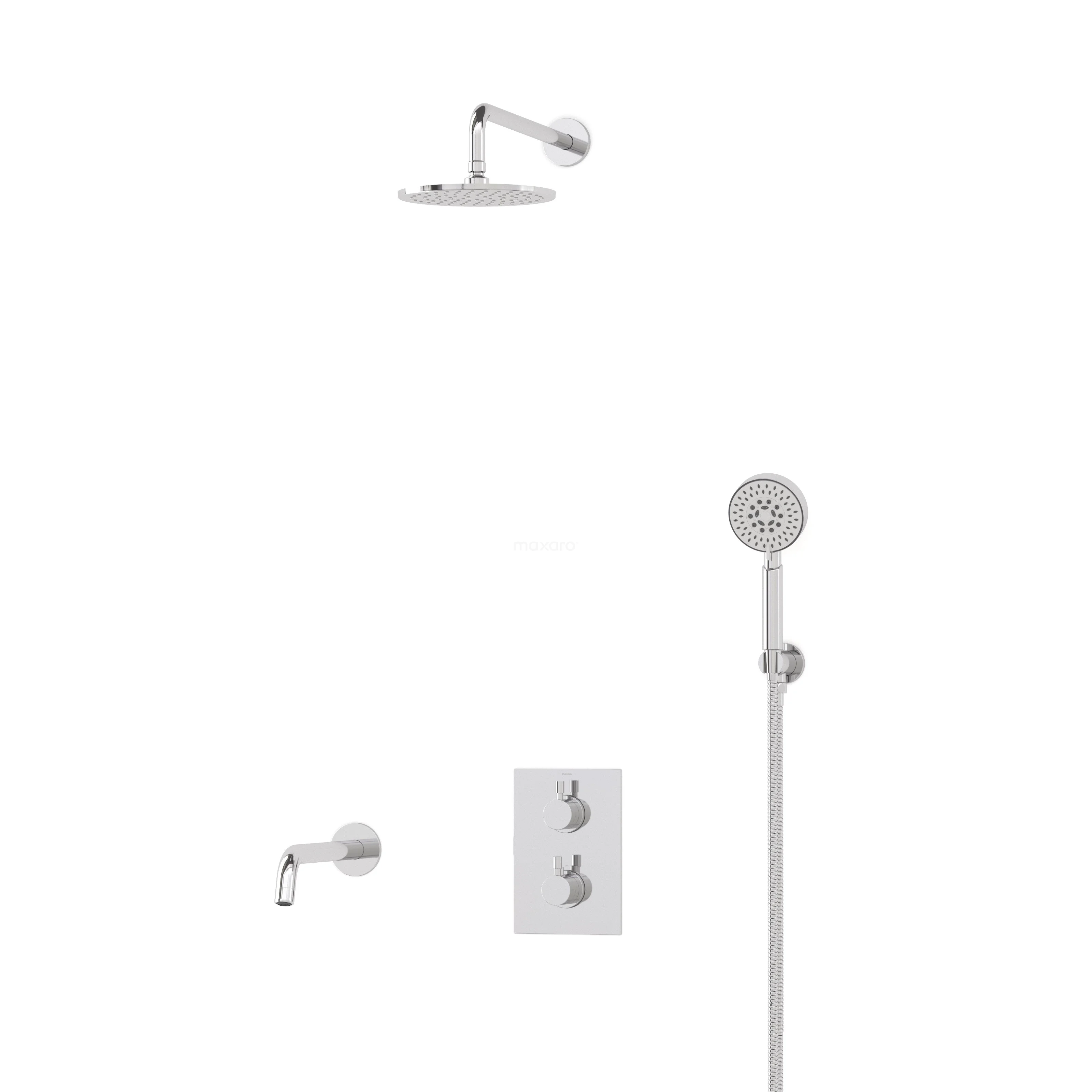 Radius Einbau Badewannenarmatur mit Regendusche | Chrom Thermostatisch