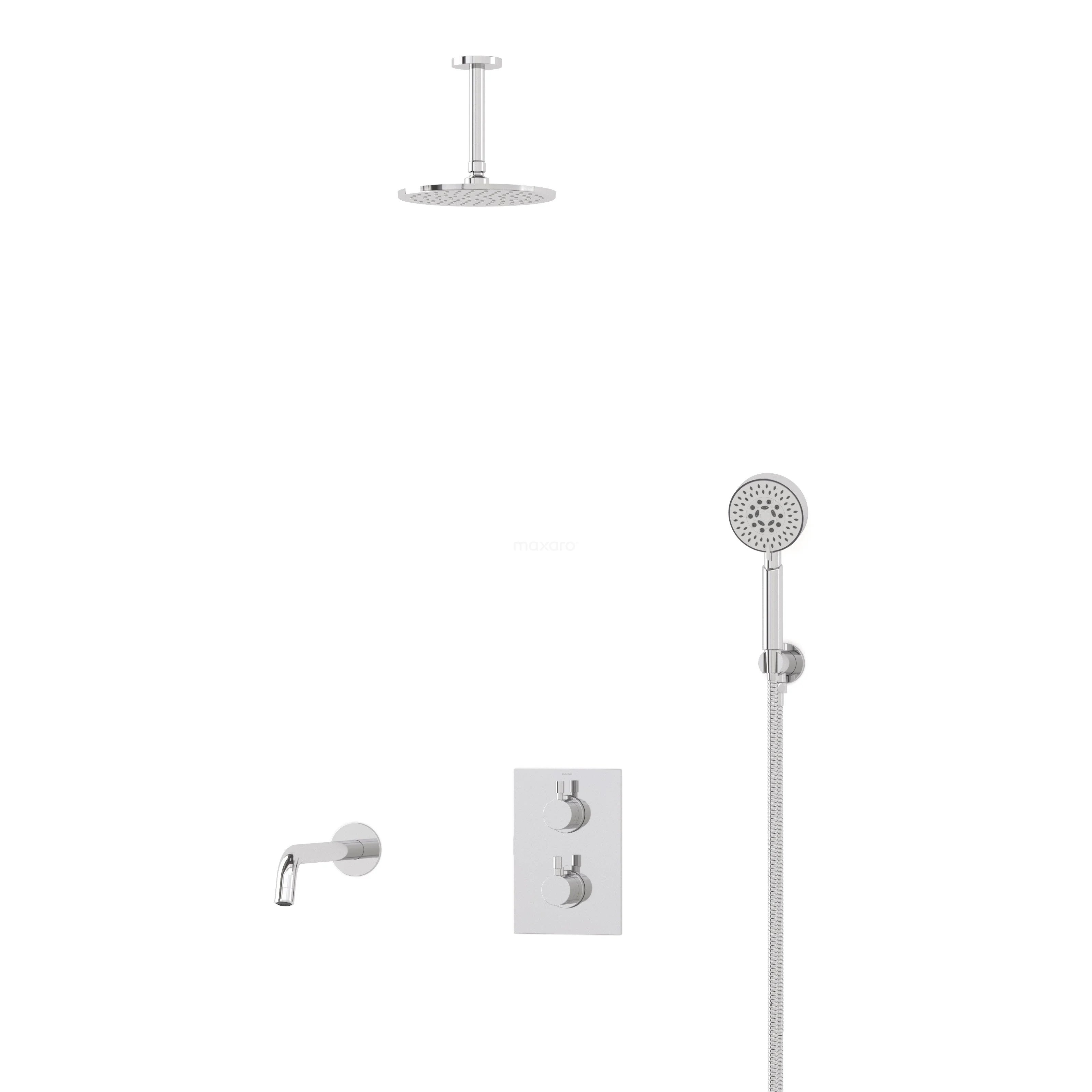 Radius Einbau Badewannenarmatur mit Regendusche | Chrom Thermostatisch