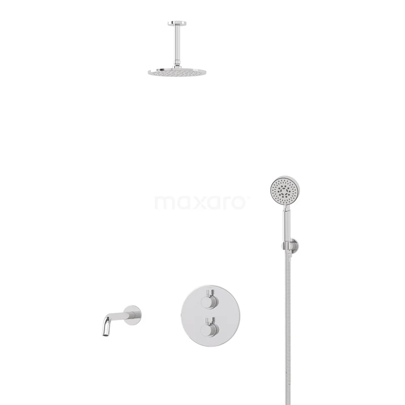 Radius Einbau Badewannenarmatur mit Regendusche | Chrom Thermostatisch
