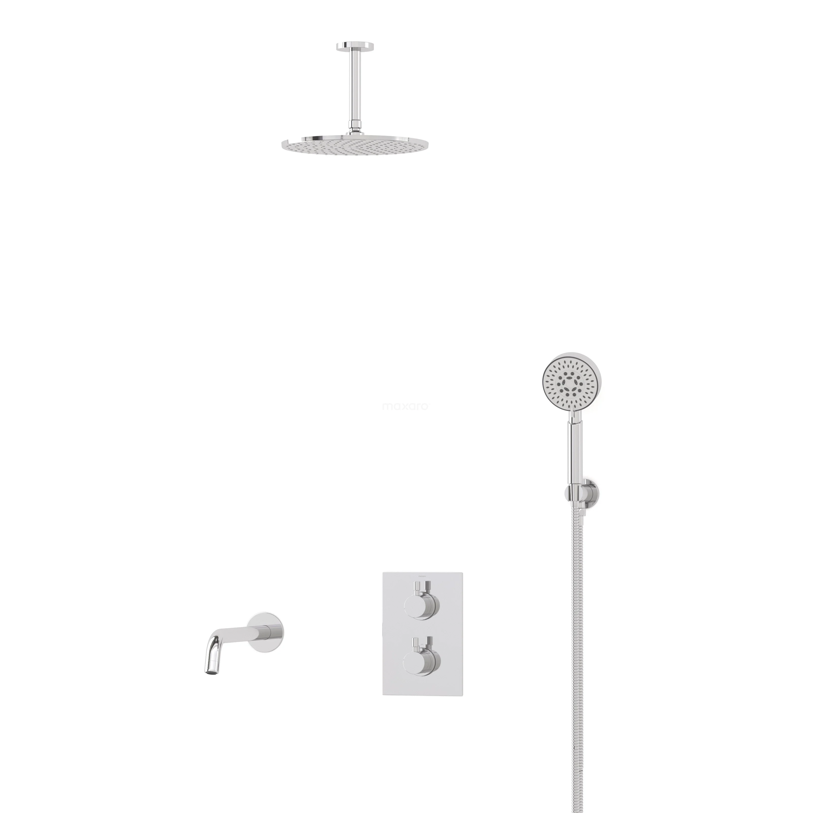 Radius Einbau Badewannenarmatur mit Regendusche | Chrom Thermostatisch