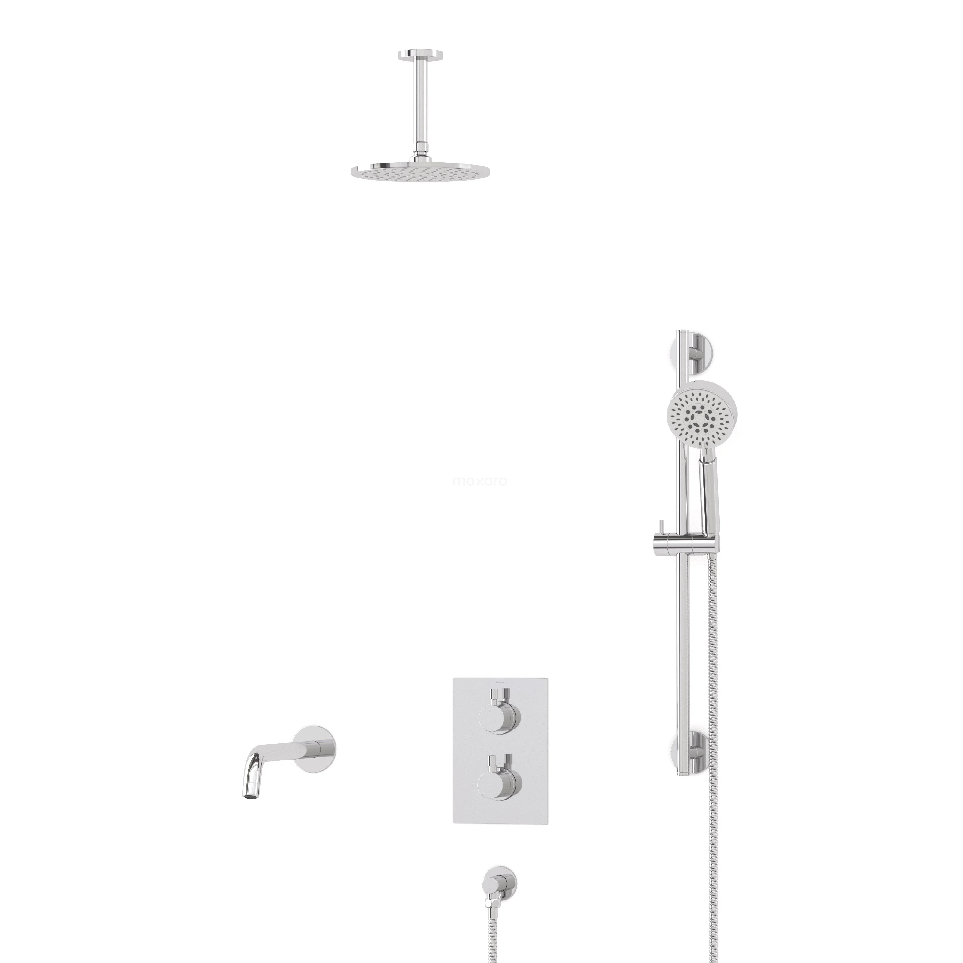 Radius Einbau Badewannenarmatur mit Regendusche | Chrom Thermostatisch