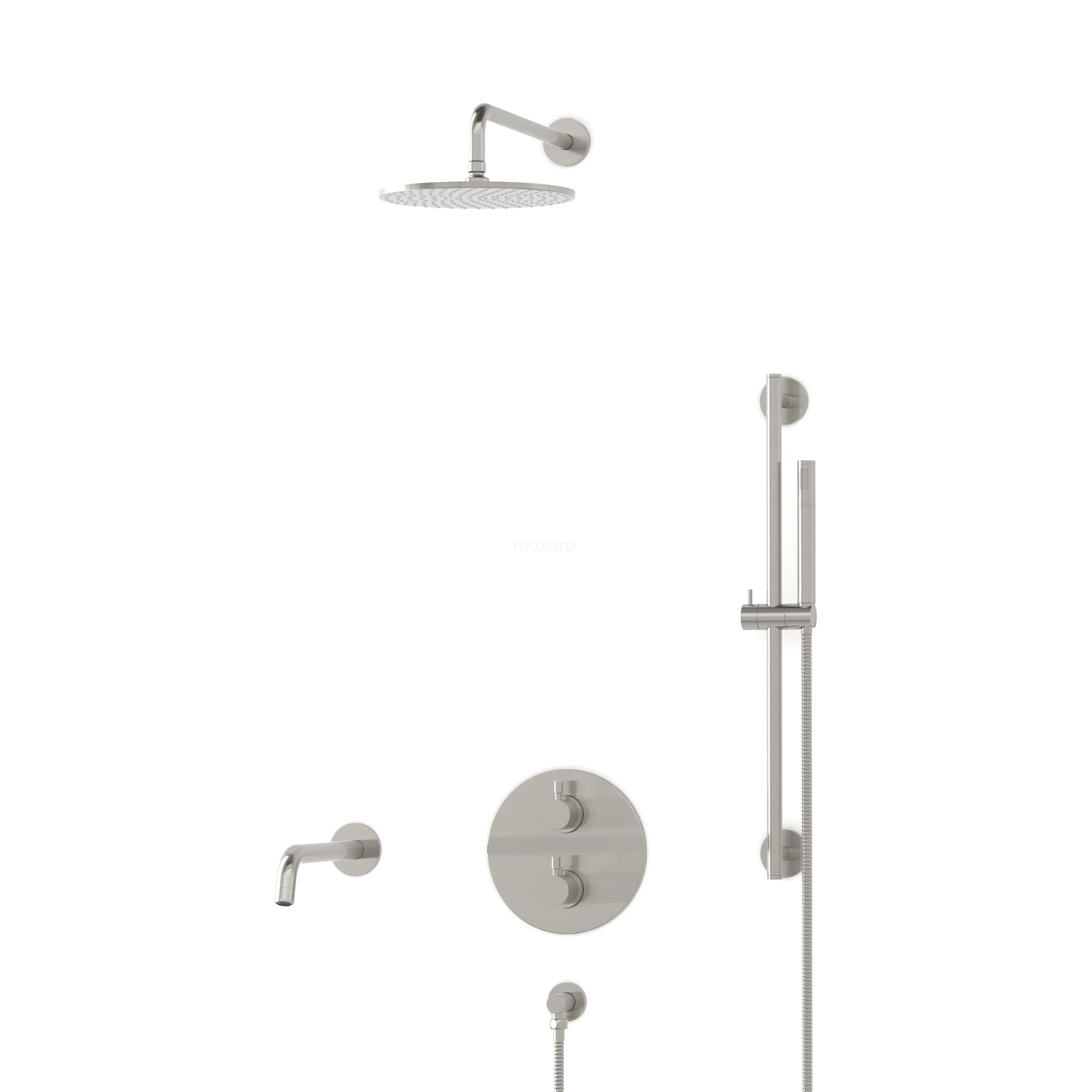 Radius Einbau Badewannenarmatur mit Regendusche | Edelstahl Thermostatisch