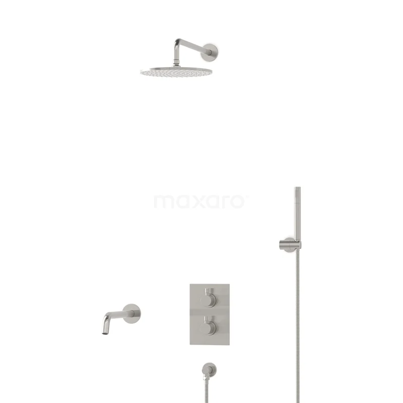 Radius Einbau Badewannenarmatur mit Regendusche | Edelstahl Thermostatisch