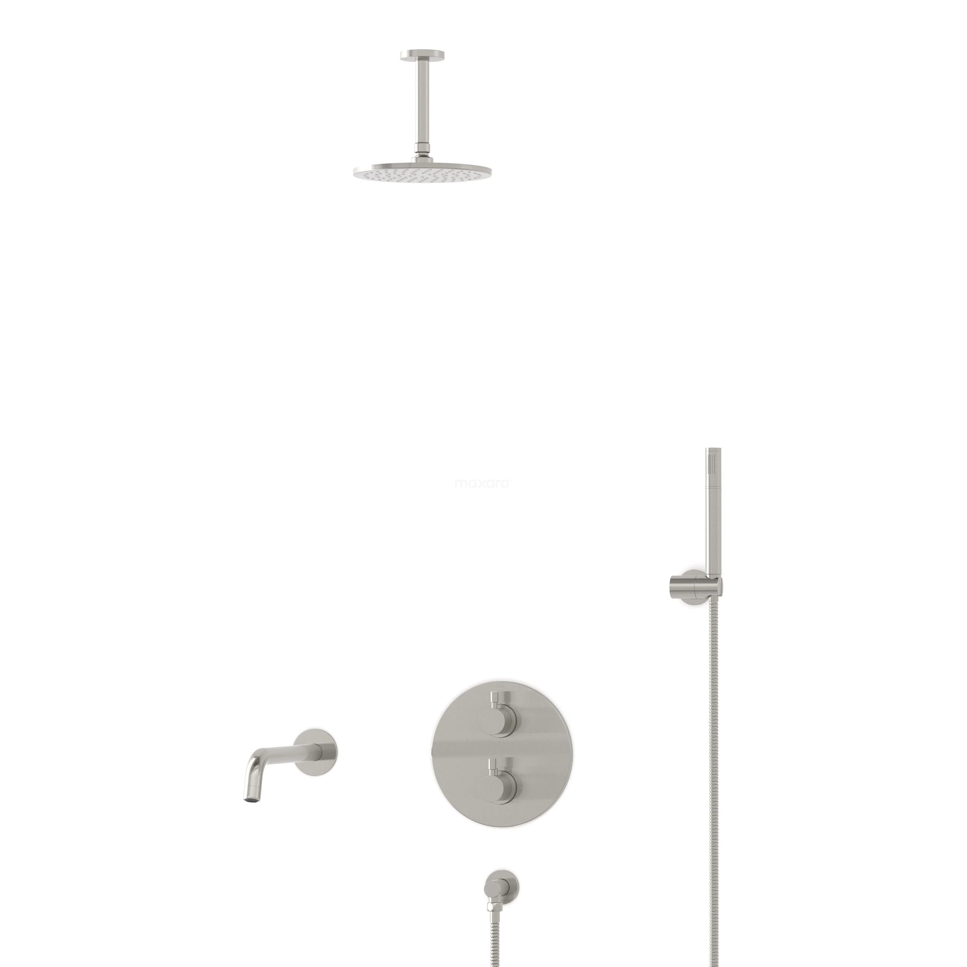 Radius Einbau Badewannenarmatur mit Regendusche | Edelstahl Thermostatisch