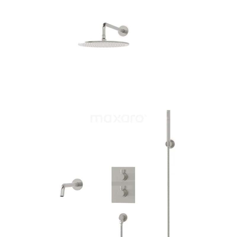 Radius Einbau Badewannenarmatur mit Regendusche | Edelstahl Thermostatisch