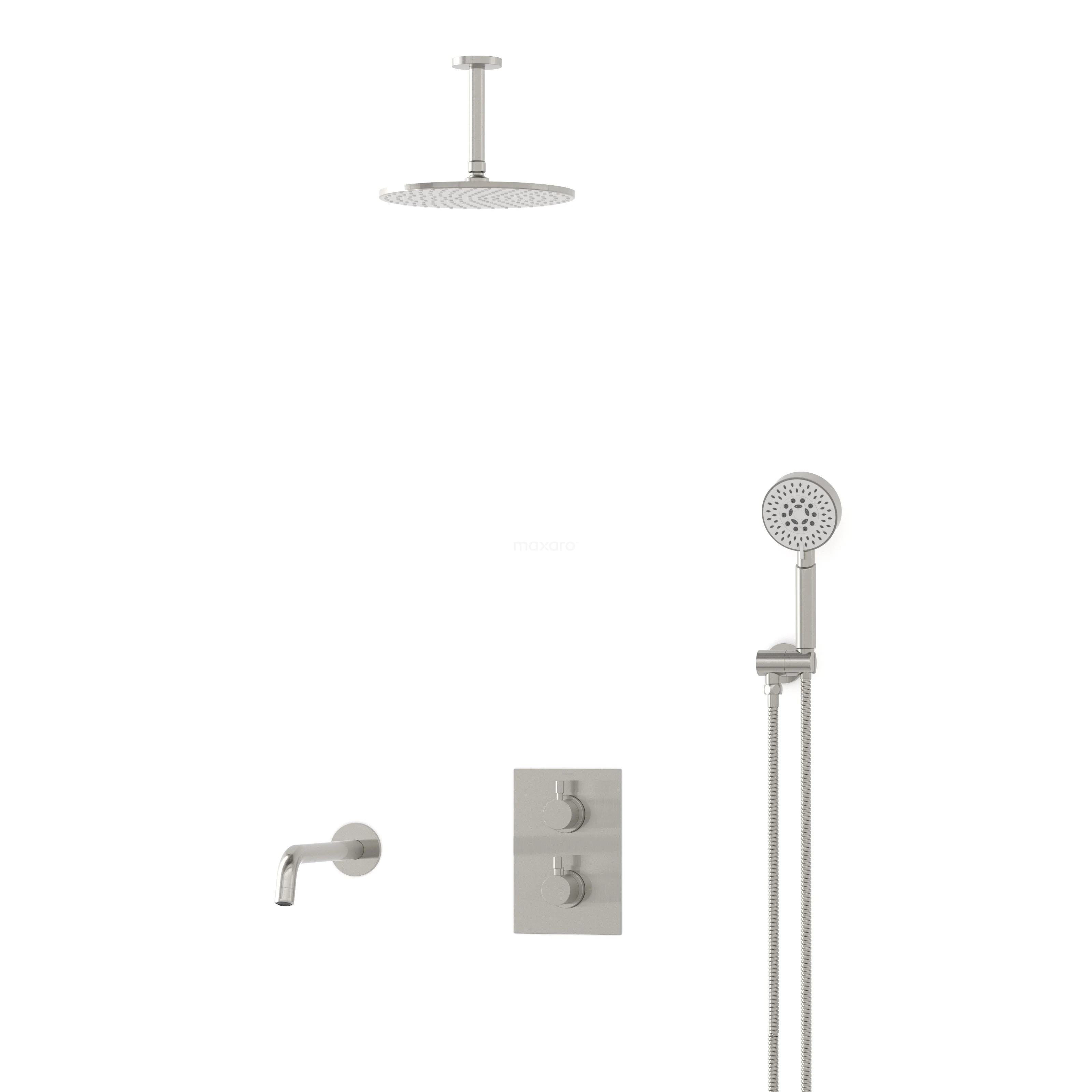 Radius Einbau Badewannenarmatur mit Regendusche | Edelstahl Thermostatisch