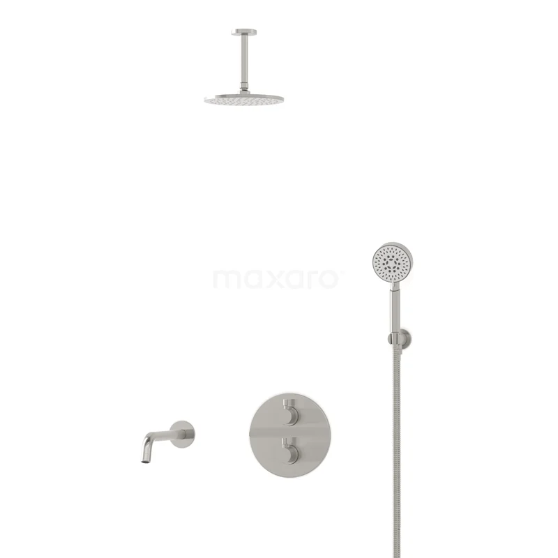 Radius Einbau Badewannenarmatur mit Regendusche | Edelstahl Thermostatisch