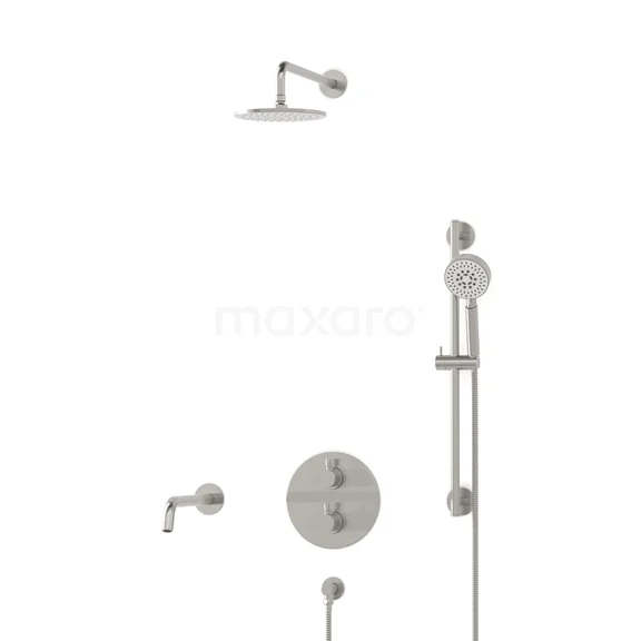 Radius Einbau Badewannenarmatur mit Regendusche | Edelstahl Thermostatisch