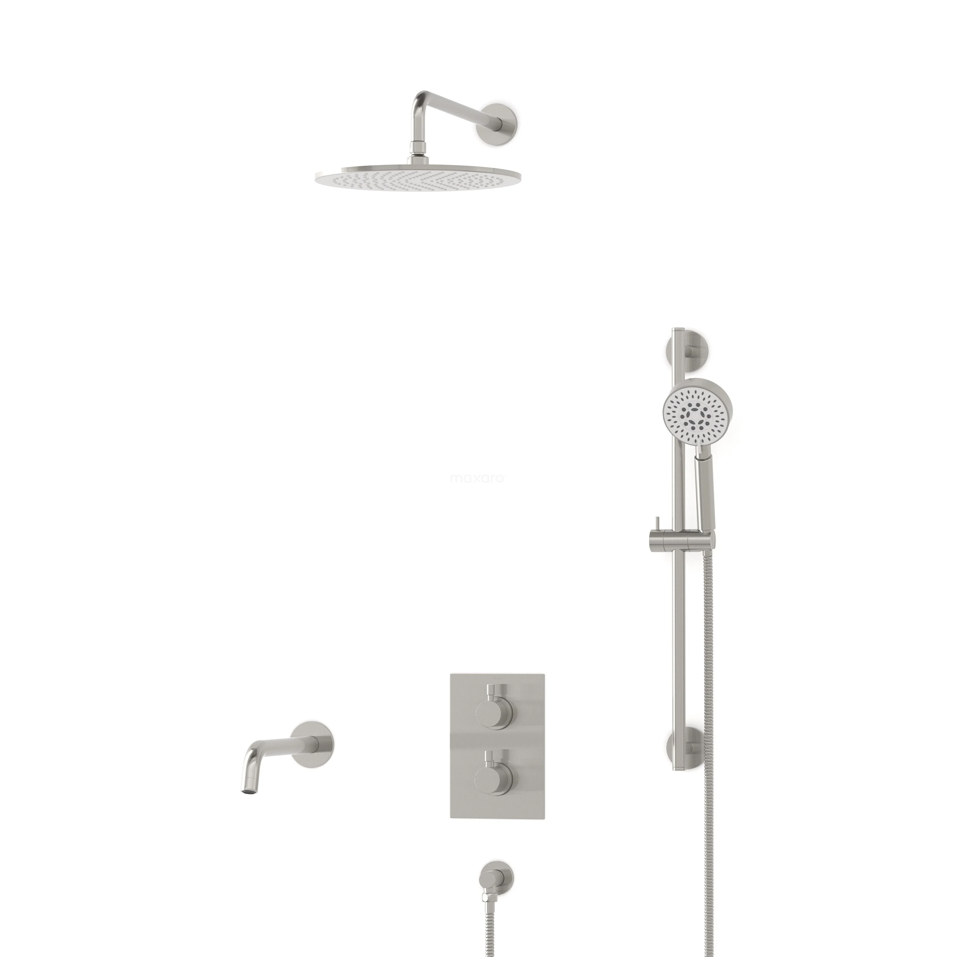 Radius Einbau Badewannenarmatur mit Regendusche | Edelstahl Thermostatisch