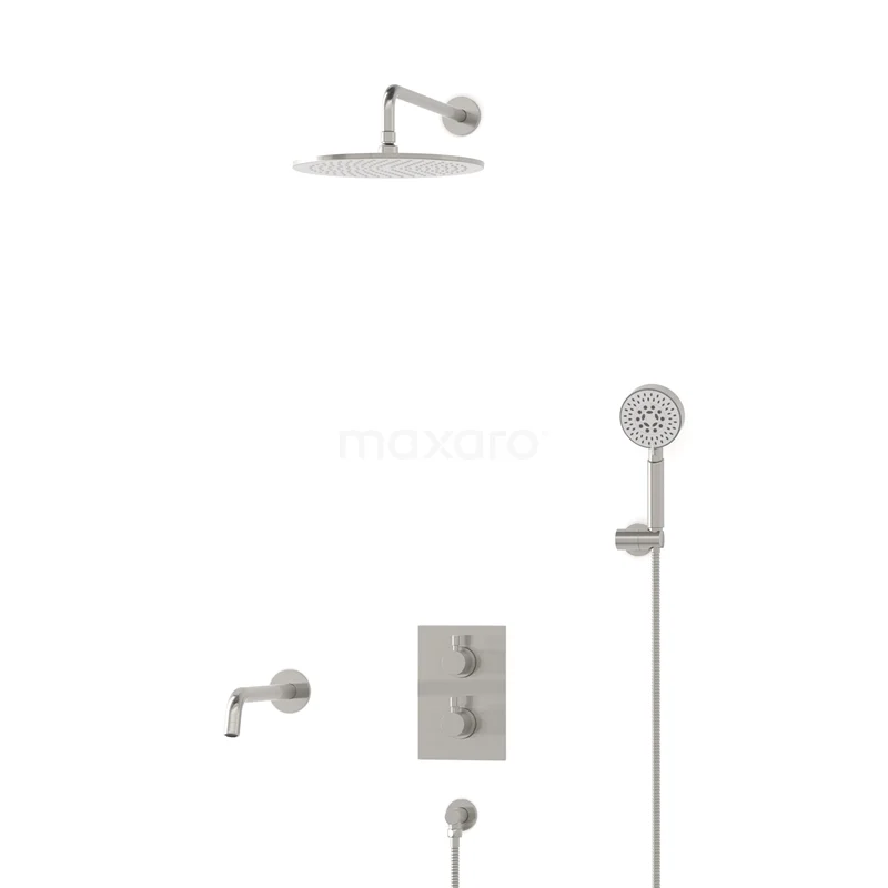Radius Einbau Badewannenarmatur mit Regendusche | Edelstahl Thermostatisch